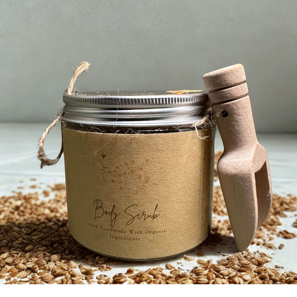 A comforting exfoliating scrub for skin that craves softness and glow. Finely ground oats soothe sensitive skin, while natural sugar gently polishes away dullness. Jojoba oil nourishes deeply, leaving your skin silky, calm, and beautifully renewed — like a quiet glow after soft rain.